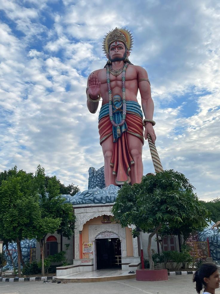 At Agroha Dham, there is a 90-foot-tall statue of Hanuman. Within the temple complex, a smaller but equally stunning Hanuman temple is towered over by this enormous statue.